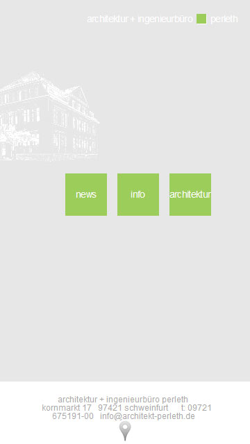 Der neue Webauftritt vom Architekturbüro Perleth aus Schweinfurt entstand auf Grundlage des Quadrats im Logo in einer klaren Rasterstruktur. In enger Abstimmung mit den Architekten entwickelte einseinsvier 2016 das Layout im Responsive Design.