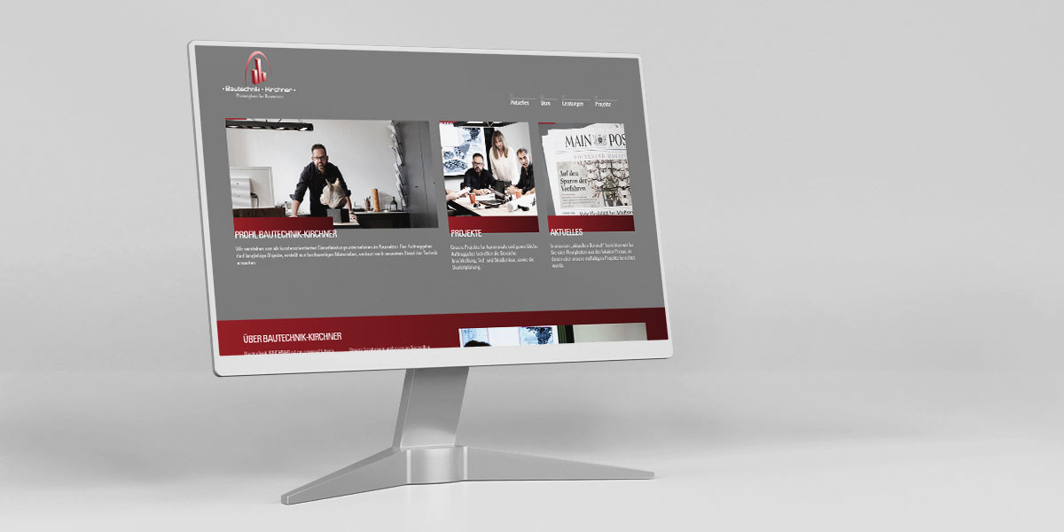 Die Website unseres langjährigen Kunden Bautechnik Kirchner in Oerlenbach/Ebenhausen sollte 2019 auf einen aktuellen Stand gebracht werden. Auf Grundlage und mit Elementen der bestehenden Website, die wir 2012 umsetzen durften, entwickelte einseinsvier 2019 ein klares Design, das die Größe jeden Bildschirms ausnutzt und den Wiedererkennungswert behält.