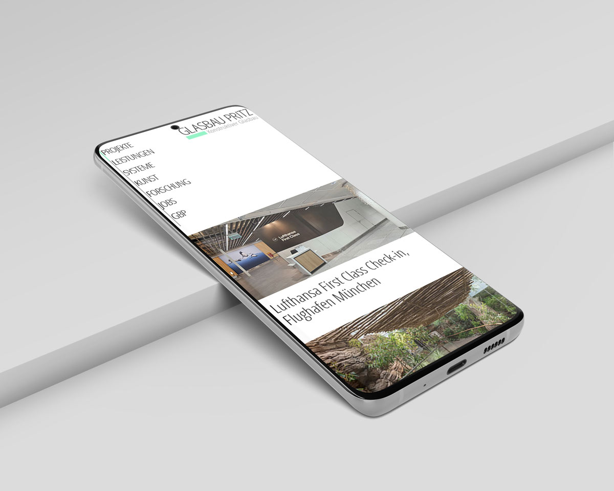 Das Unternehmen mit Spezialisierung auf den konstruktiven Glasbau fragte bei einseinsvier an und wünschte sich ein minimalistisches Design, das im Stil eher dem eines Architekturbüros als dem eines Handelsunternehmens gleichen sollte. Verständlich, bei den sehr architektonischen Projekten, die die Firma Glashandel Pritz umsetzt. Innerhalb weniger Wochen setzte einseinsvier die Website als Responsive Design um.