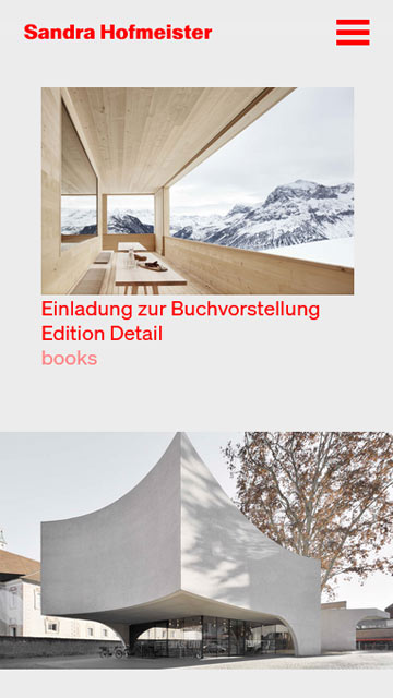 Mit einer grafischen Vorgabe durfte einseinsvier 2016 die Seite der Münchner Kunst- und Architektur-Autorin Sandra Hofmeister umsetzen und 2024 erweitern.