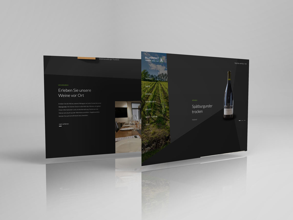 Ausgezeichnete Weine aus Frankens ältester Weinstadt Hammelburg verdienen auch eine ausgezeichnete Website. So durften wir für das Familien-Weingut Ruppert mit Sitz im Altort von Hammelburg den neuen Webauftritt gestalten. Angelehnt an das Interior der Vinothek und des Verkaufsraums gestalteten wir die neue Seite dunkel und geradlinig, um so den Focus auf die erlesenen Produkte der Rupperts zu lenken.