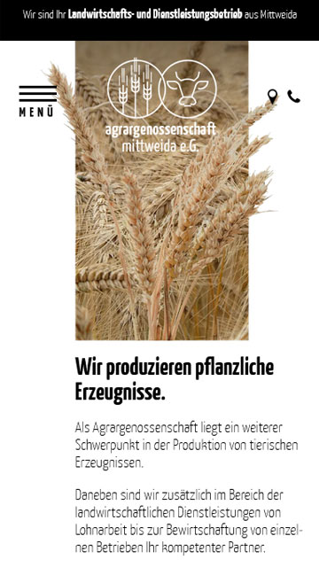 Nachdem die nach der Wende gegründete Agrargenossenschaft Mittweida e.G. 2022 unter neue Leitung gestellt wurde, wurde einseinsvier vom neuen Vorstandsvorsitzenden beauftragt ein neues Corporate Design zu entwickeln. So gestalteten wir von Logo und Website über Visitenkarten, Geschäftsausstattung und Beschilderung bis hin zur Fahrzeugbeklebung und Einladungskarten alles neu. Nun entspricht der äußere Auftritt auch dem Schlagkraft des landwirtschaftlichen Betriebs im Herzen Sachsens.