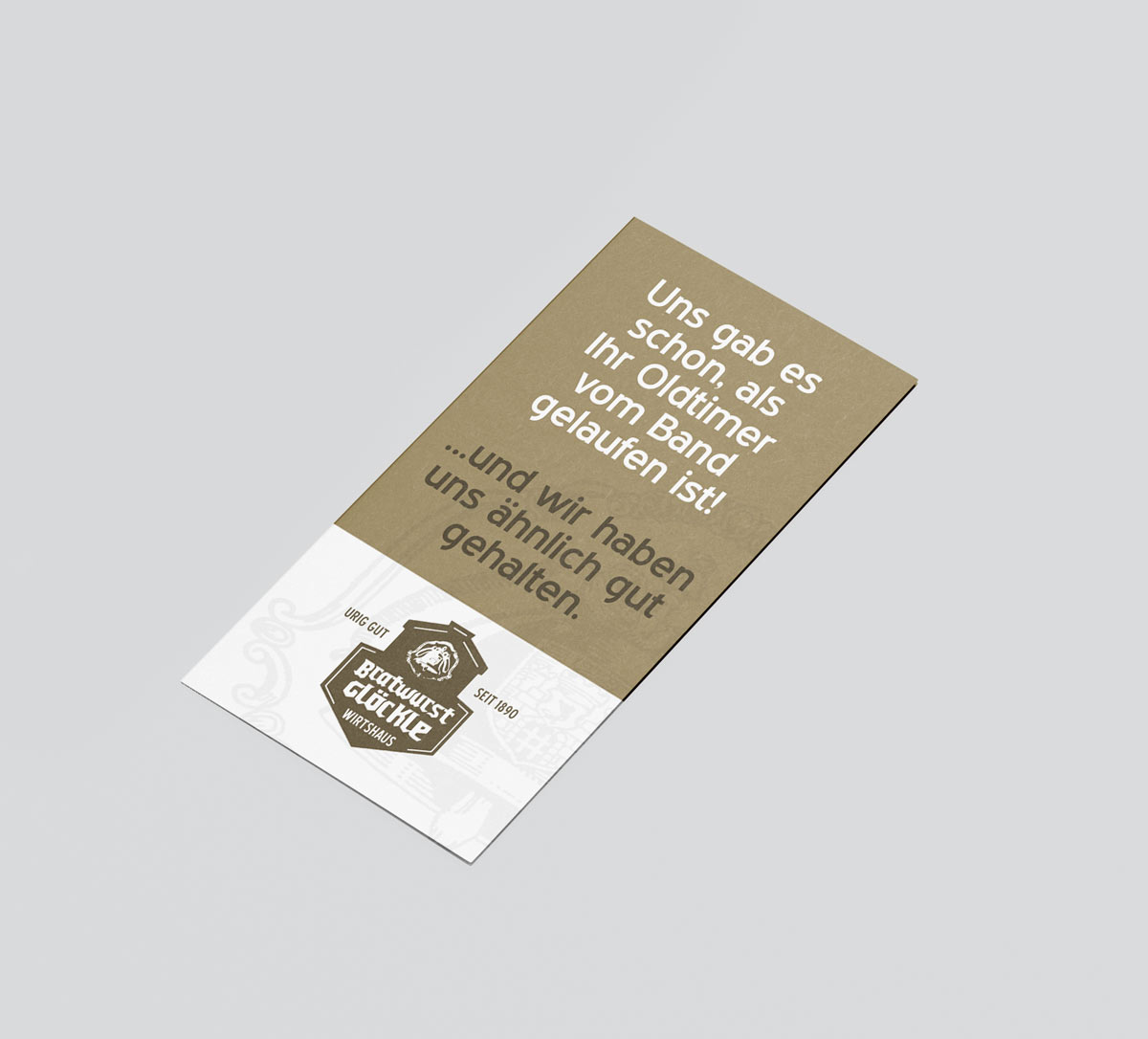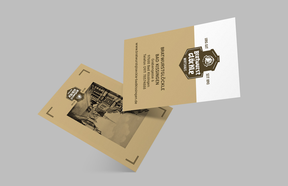2019 übernahm die Wirtsfamilie Hippler das Traditionsgasthaus Bratwurstglöckle in der Bad Kissinger Grabengasse. Im Gegensatz zum bestehenden Schuberts sollte das Bratwurstglöckle eher ein Wirtshaus denn ein Restaurant sein. einseinsvier durfte sich um die Neuerstellung des Logos, das Webdesign sowie um die gesamte Geschäftsausstattung kümmern. So setzten wir neben einer schlichten Website auch Visitenkarten, Briefpapier, Speisekarten und Großflächenplakate für unsere Kunden um.