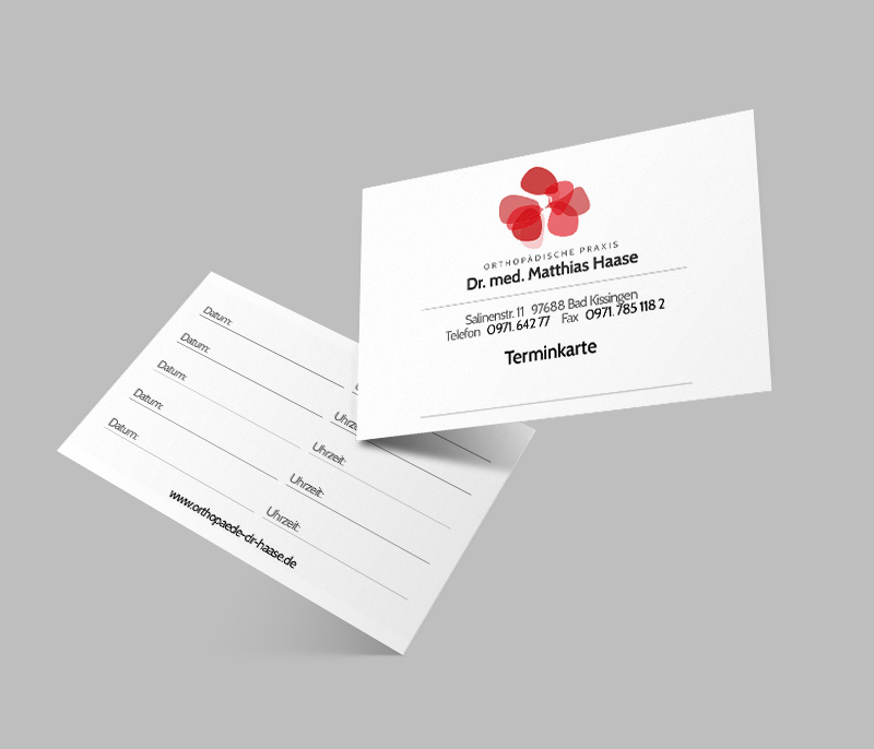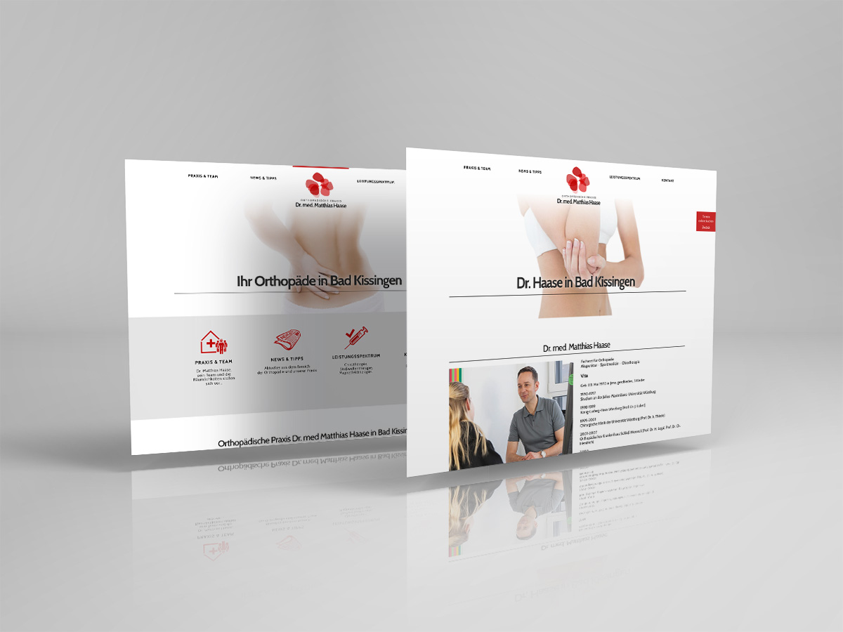 Mit neuem Logo und frischer Website wollte der Orthopäde Dr. Haase aus Bad Kissingen seinen Außenauftritt erneuern. einseinsvier erarbeitete zusammen mit dem Mediziner das neue Logo und setzte die Website als responsive Seite um. Im Weiteren durften wir dann auch die Terminkarten und Rezeptblöcke für die Praxis entwerfen.